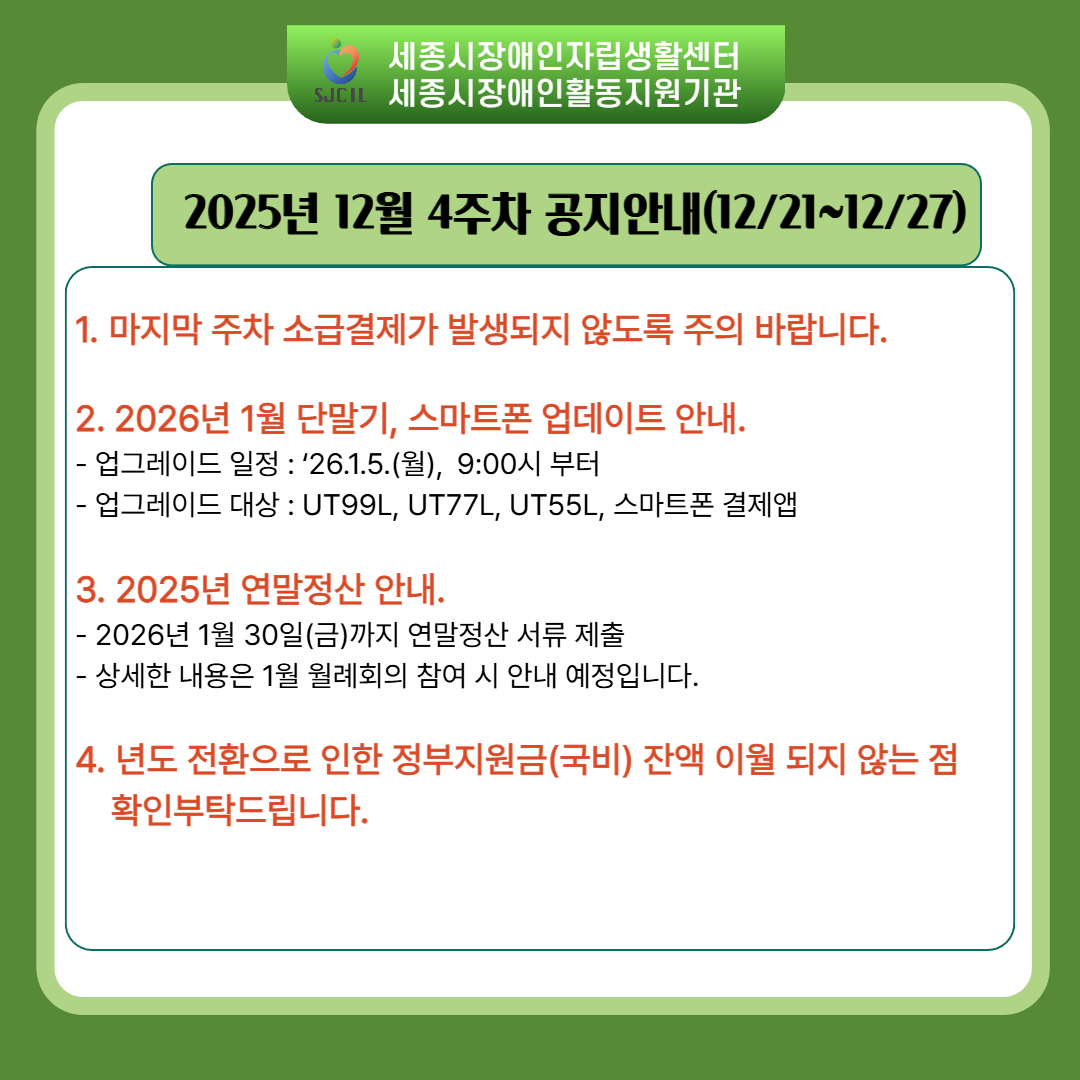 12월 4주차(12/21~12/27)공지안내
