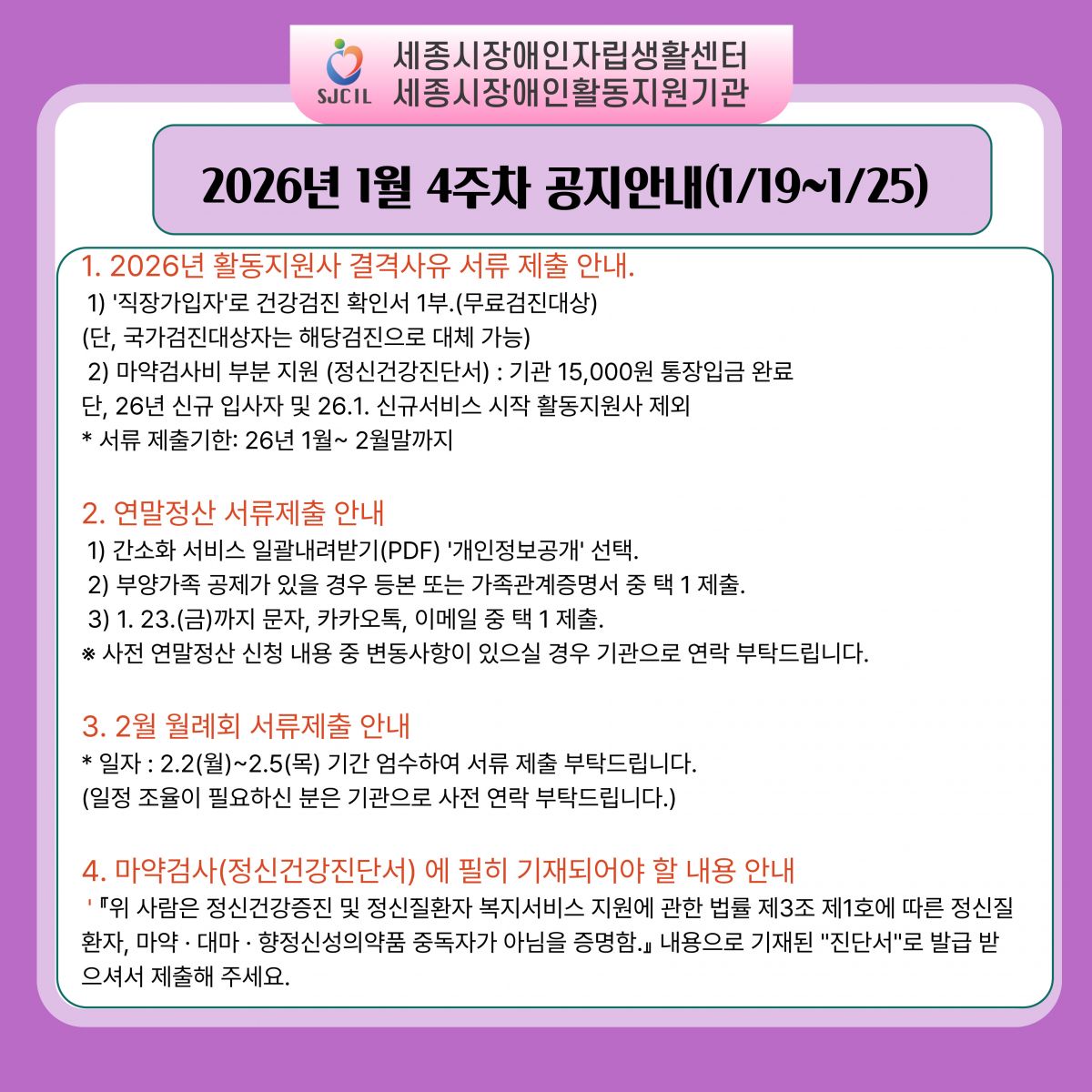2026년 1월 4주차(1/19~1/25) 공지안내