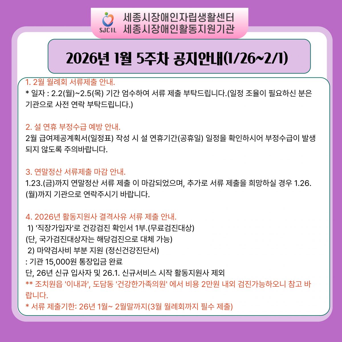 2026년 1월 5주차(1/26~2/1) 공지안내