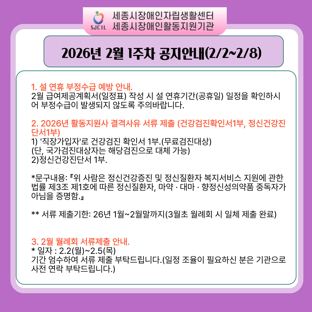 [2026년 2월 1주차(2.2.(월)~2.8.(일)/) 공지사항 안내]