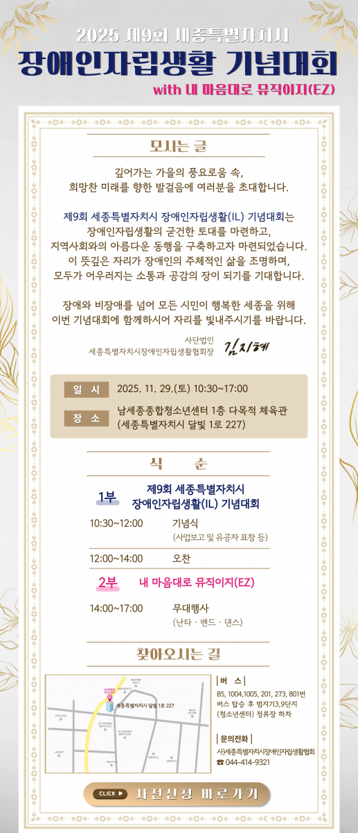 제9회 세종특별자치시장애인자립생활(IL)기념대회 & 내 마음대로 뮤직이지(EZ) 안내