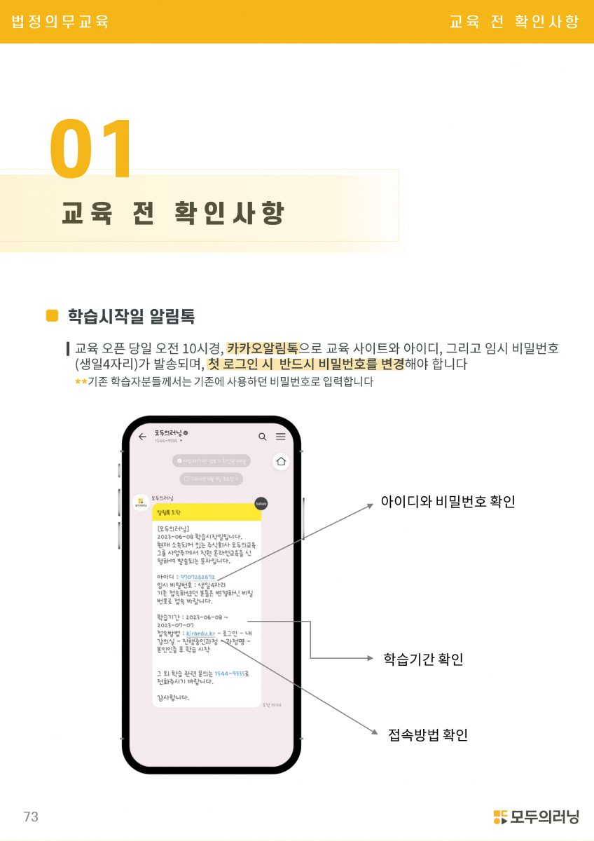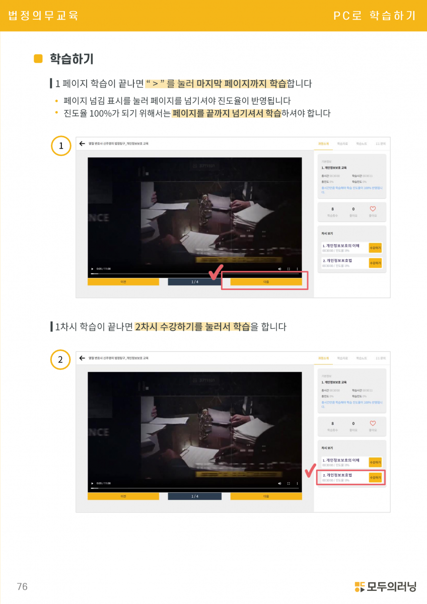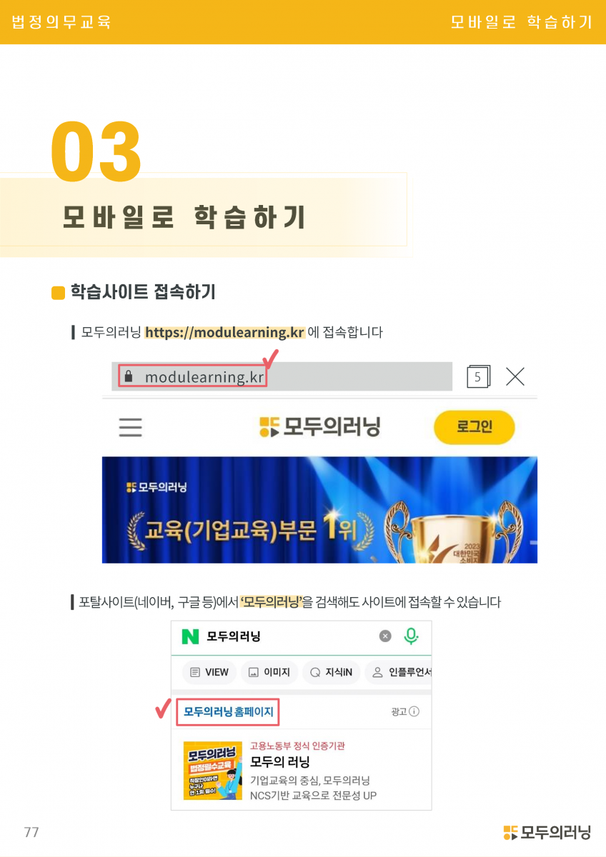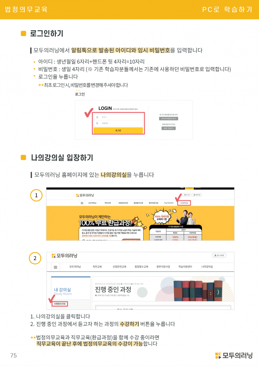 ○법정의무교육 수강 사이트(모두의 러닝) : https://modulearning.kr/main/