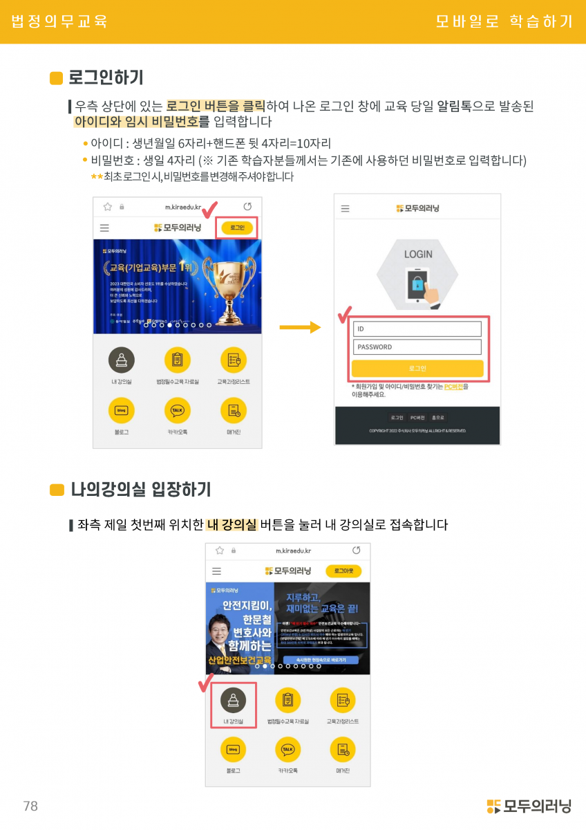 2024년 법정의무교육 수강 안내드립니다. 수강방법 확인 후 기간 내에 수강해주시기 바랍니다.