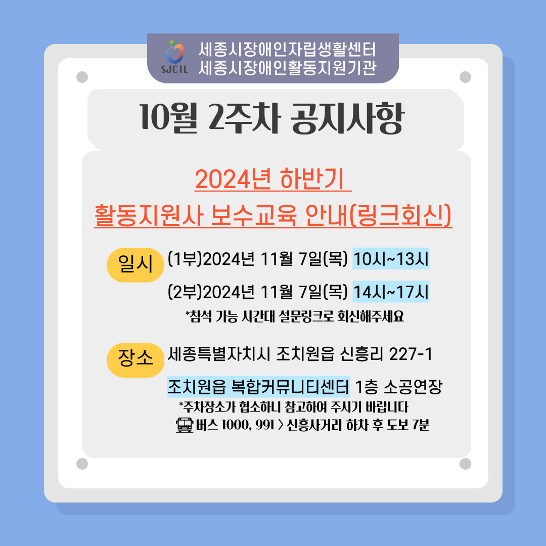 "활동지원사 하반기 보수교육 일정 및 설문링크 회신 안내"