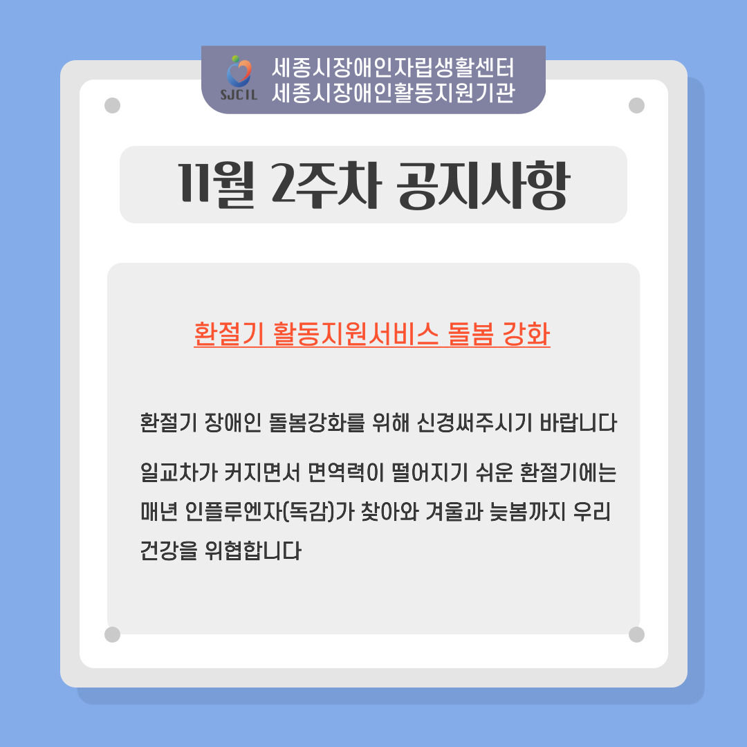 안녕하세요 세종시장애인자립생활센터 장애인활동지원기관입니다.