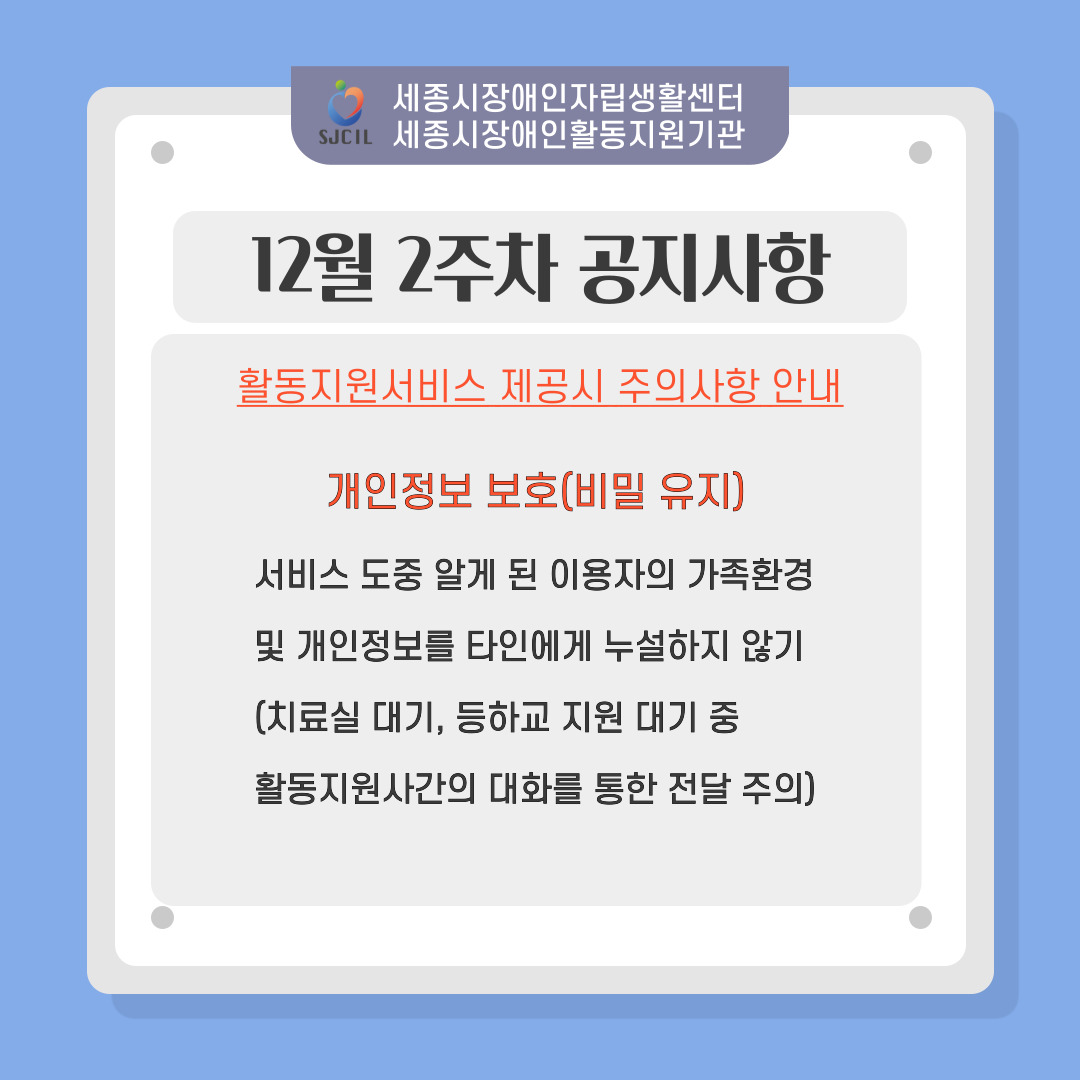 "활동지원서비스 제공시 주의사항 안내-개인정보 보호(비밀 유지)"