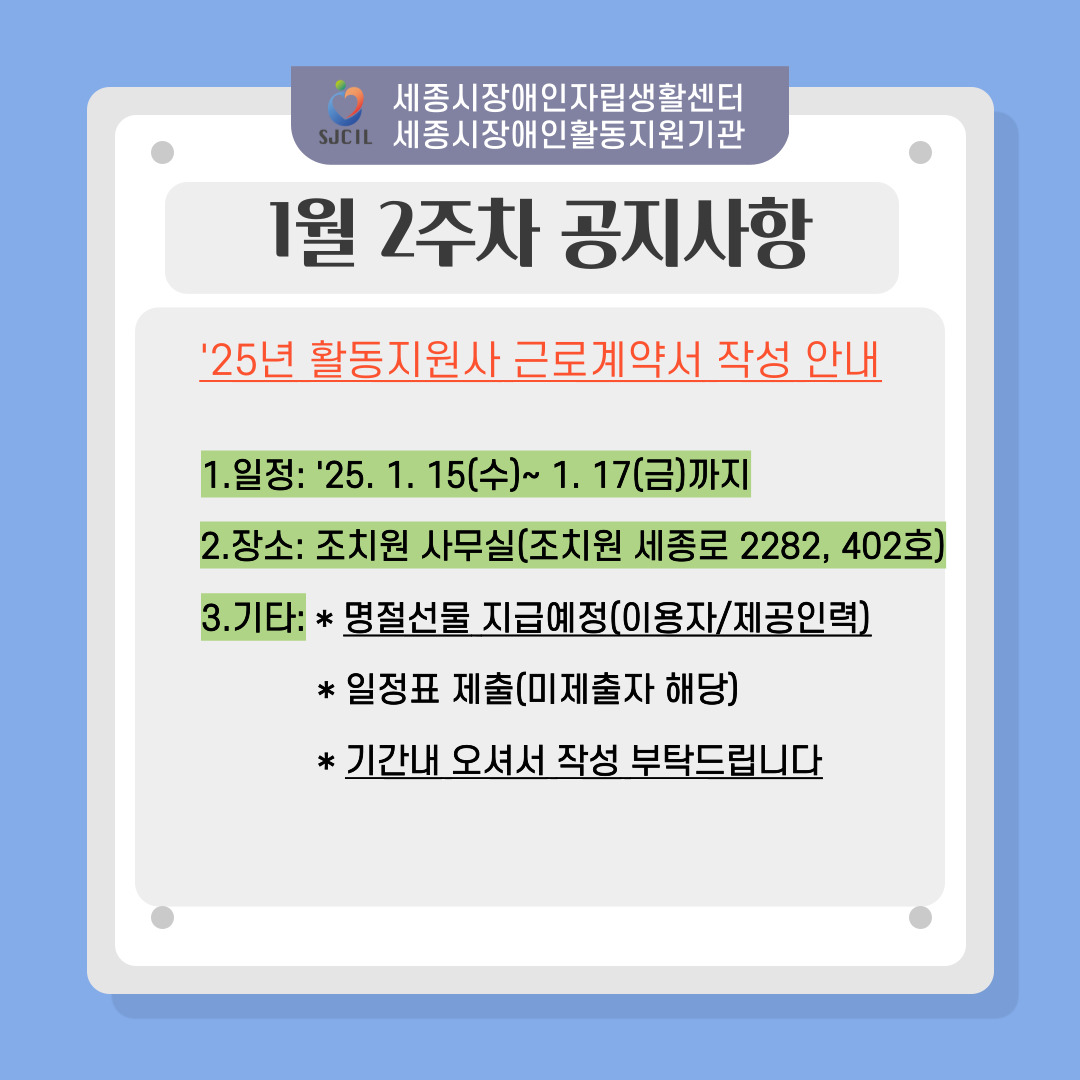" '25년 활동지원사 근로계약서 작성 안내('25. 1. 15(수)~1. 17(금)까지)"