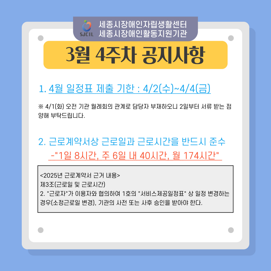 1. 4월 일정표 제출 기한: 4/2(수)~4/4(금)