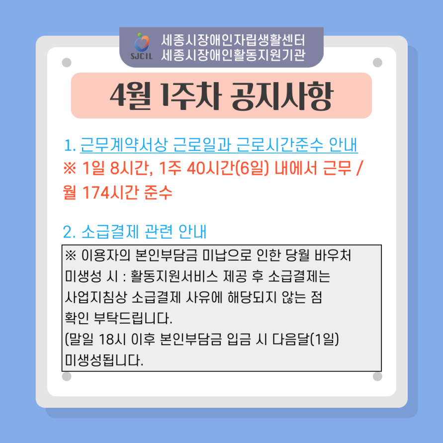 - 내용 : 1일 8시간, 1주 40시간 내에서 근무 / 월 174시간 준수