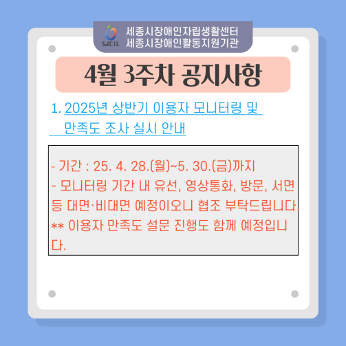 1. 2025년 상반기 이용자 모니터링 및 만족도 조사 실시 안내