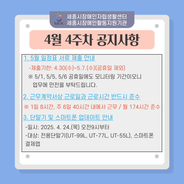 ※ 5/1, 5/5, 5/6 공휴일에도 모니터링 기간이오니 업무에 만전을 부탁드립니다.