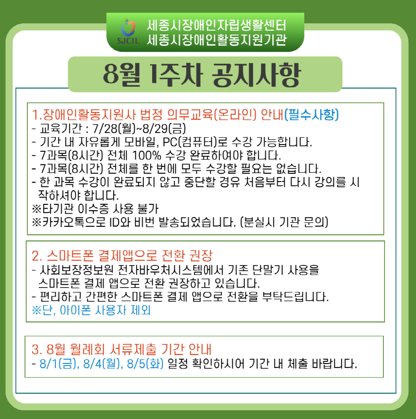 - 8/1(금), 8/4(월), 8/5(화) 일정 확인하시어 기간 내 체출 바랍니다.
