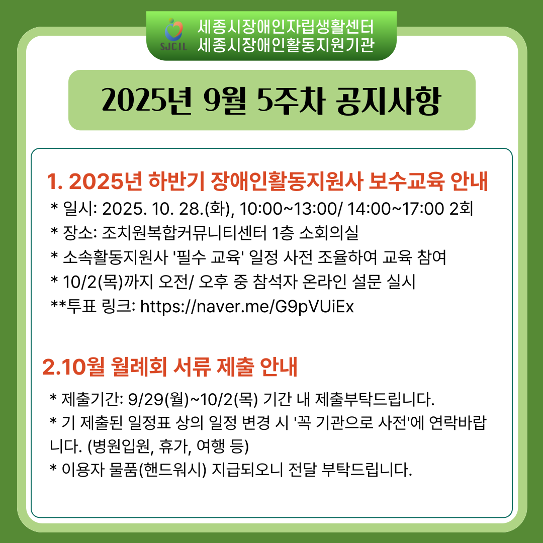 1. 2025년 하반기 장애인활동지원사 보수교육 안내