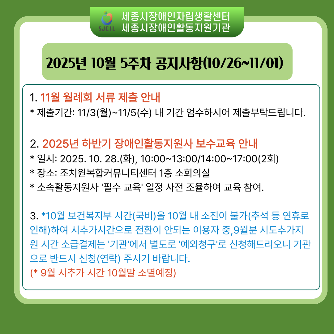 3. *10월 보건복지부 시간(국비)을 10월 내 소진이 불가(추석 등 연휴로 인해)하여 시추가시간으로 전환이 안되는 이용자 중,