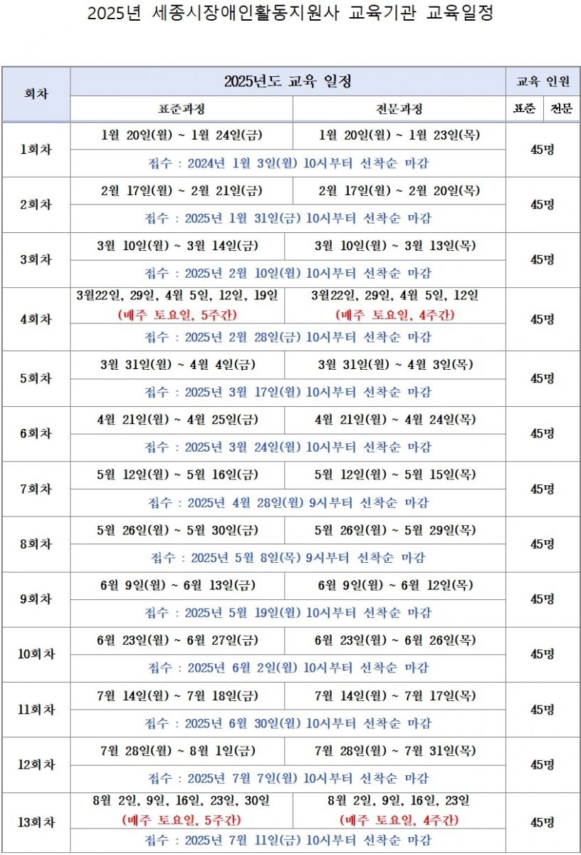 2025년 장애인활동지원사 교육일정 안내(10월 일정 변경)