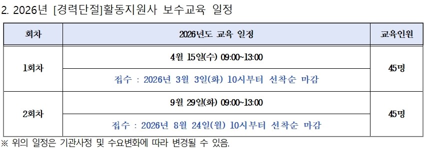 2026년 [경력단절]활동지원사 보수교육 일정을 안내해드립니다.