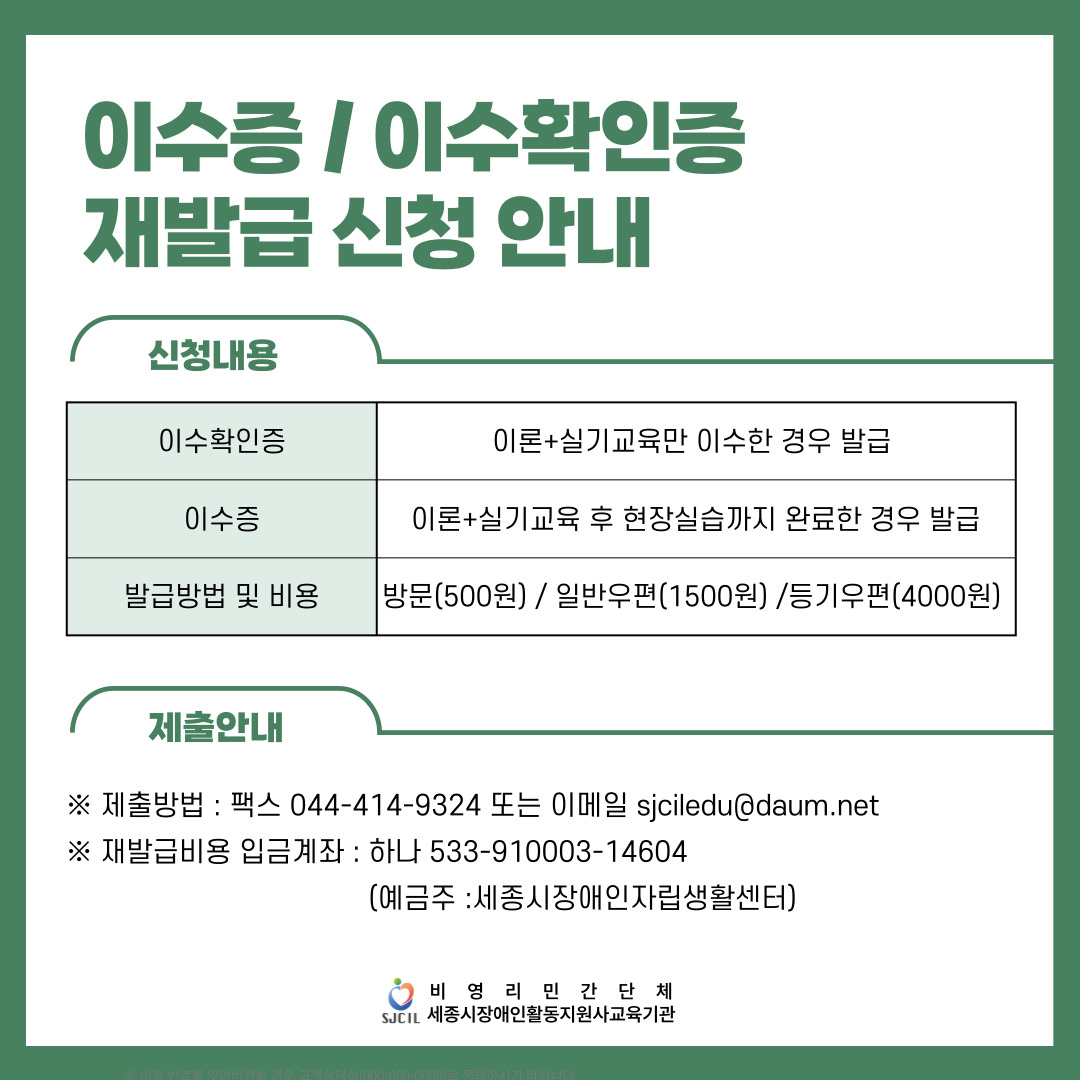 이수증 및 이수확인증 재발급 신청 관련 안내드립니다.